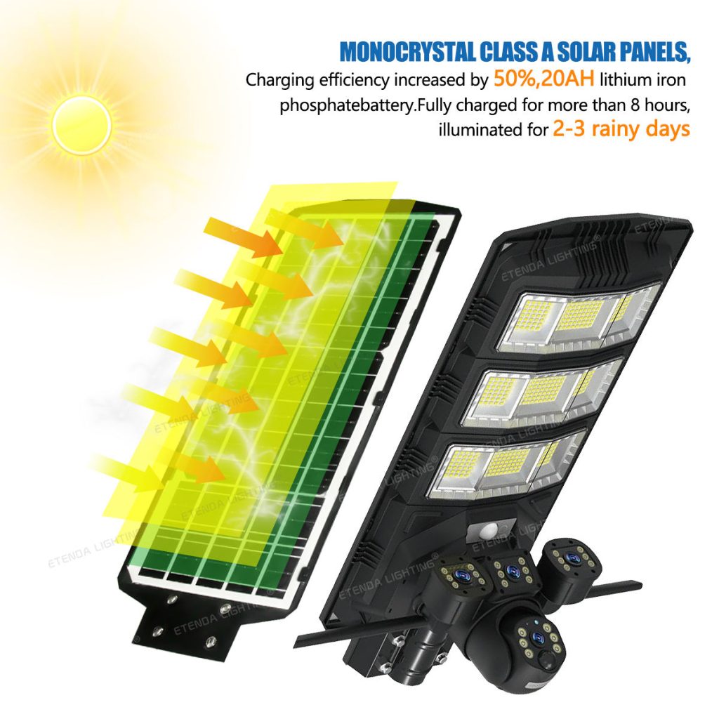 Powerful 450W Solar Panel: The 450W solar panel provides efficient energy conversion, ensuring the light remains powered throughout the night while being environmentally friendly and cost-effective.