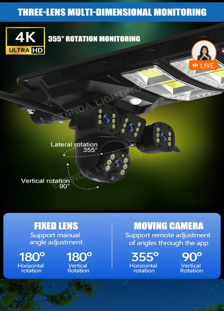 Remote App Control: With a dedicated app, users can monitor and control the light and camera remotely, offering enhanced convenience and security management at any time.