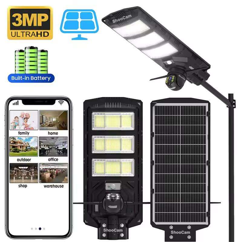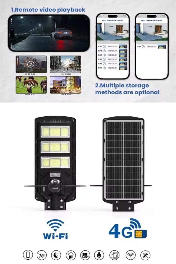 450W All In one Solar Street Light With 4G Wifi solar camera 3MP V380Pro AI Camera Solar Light